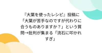 『大葉を使ったレシピ』投稿に「大葉が苦手なのですが代わりに合うものありますか?」という質問→批判が集まる「流石に叩かれすぎ」