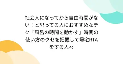 社会人になってから自由時間がない!と思ってる人におすすめなテク「風呂の時間を動かす」時間の使い方のクセを把握して帰宅RTAをする人々