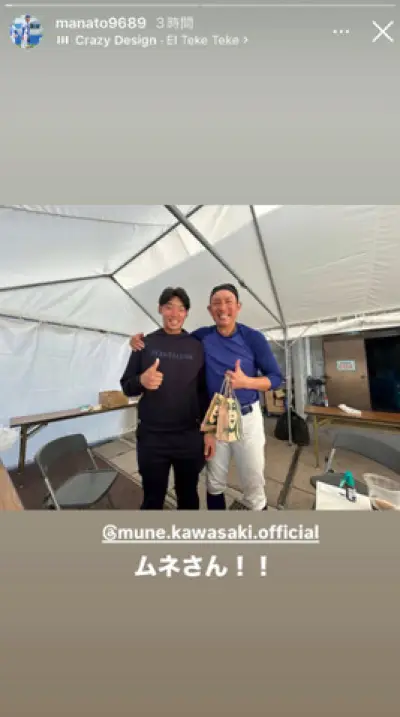 DeNA田内真翔、キャンプの初休日にムネリンと再会「ムネさん!!」