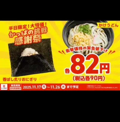 かっぱ寿司でおにぎりとうどんが90円wwwwwwwww