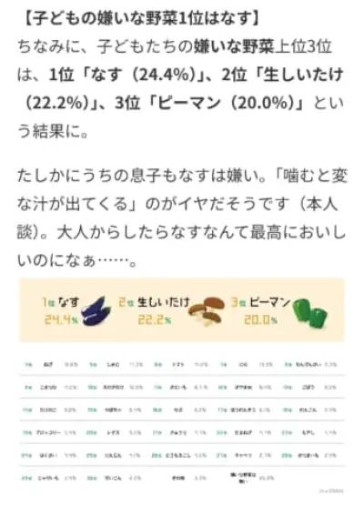 【悲報】ナス、子供から嫌われていた