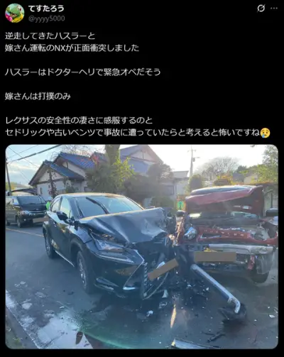 レクサスの剛性、凄い。事故をしてもほぼ無傷。これ軽自動車なら粉々になるだろ・・・・・・