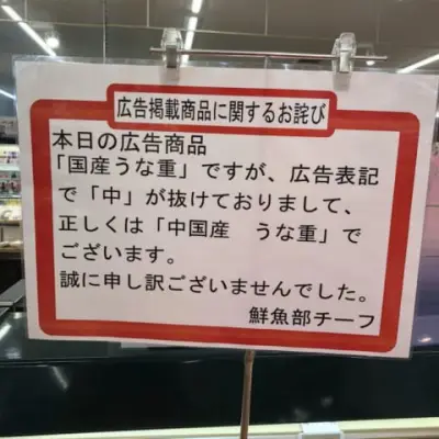 【画像】スーパー「国産うな重と記載していましたが1文字抜けていました。すみません」