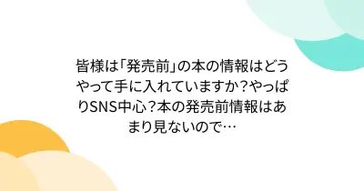 皆様は「発売前」の本の情報はどうやって手に入れていますか?やっぱりSNS中心?本の発売前情報はあまり見ないので…