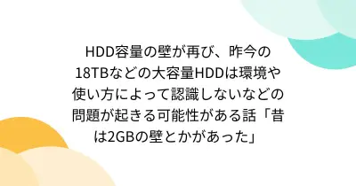 HDD容量の壁が再び、昨今の18TBなどの大容量HDDは環境や使い方によって認識しないなどの問題が起きる可能性がある話「昔は2GBの壁とかがあった」