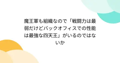 魔王軍も組織なので「戦闘力は最弱だけどバックオフィスでの性能は最強な四天王」がいるのではないか