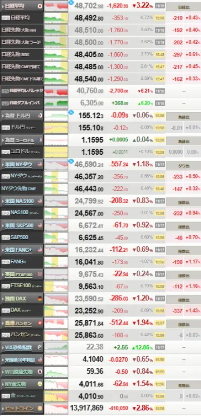 【相場】日経平均の下落率3%超す 4万9000円台を素通りして4万8000円台で引け 財政懸念及び日中対立懸念