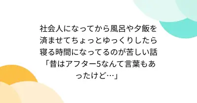 社会人になってから風呂や夕飯を済ませてちょっとゆっくりしたら寝る時間になってるのが苦しい話「昔はアフター5なんて言葉もあったけど…」