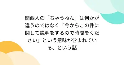 関西人の「ちゃうねん」は何かが違うのではなく「今からこの件に関して説明をするので時間をください」という意味が含まれている、という話