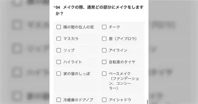 SHEINのアンケート『メイクの際、通常どの部分にメイクしますか?』→選択肢の様子がおかしくて困惑する「なんかの心理テストか?って思うくらい訳わからん」