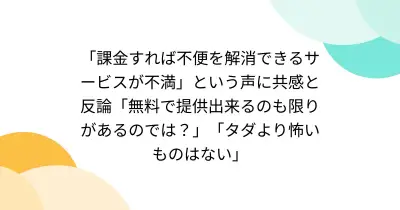 「課金すれば不便を解消できるサービスが不満」という声に共感と反論「無料で提供出来るのも限りがあるのでは?」「タダより怖いものはない」