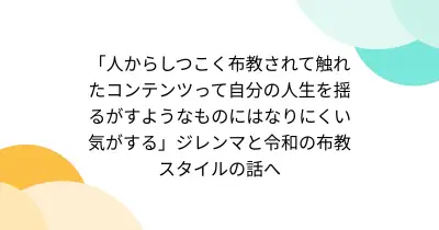 「人からしつこく布教されて触れたコンテンツって自分の人生を揺るがすようなものにはなりにくい気がする」ジレンマと令和の布教スタイルの話へ