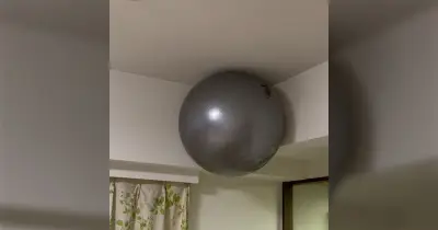 バランスボールを天井の隅に押し込んでから5年経ったが、いまだに落ちてこない「最早、お部屋のインテリア」「体育館のバレーボール状態」