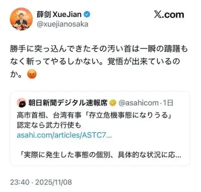 高市総理きっかけの中国外交部の対日警告文、日本でネットミームとして玩具にされた末に台湾メディアデビュー
