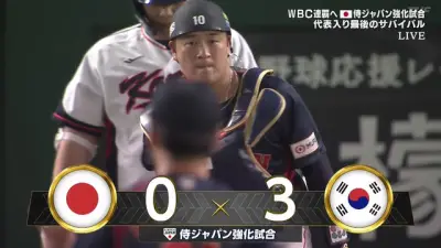 侍ジャパン、今日も韓国に先制許す…金丸夢斗3失点