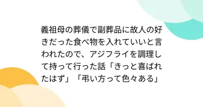 義祖母の葬儀で副葬品に故人の好きだった食べ物を入れていいと言われたので、アジフライを調理して持って行った話「きっと喜ばれたはず」「弔い方って色々ある」