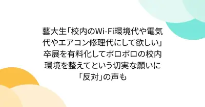 藝大生「校内のWi-Fi環境代や電気代やエアコン修理代にして欲しい」卒展を有料化してボロボロの校内環境を整えてという切実な願いに「反対」の声も