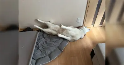 はじめて床暖房を味わって動けなくなってしまったシベリアンハスキー、自由な寝相で謳歌する「気持ちよくて立てません」