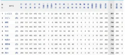 【悲報】パ・リーグOPSランキング1位レイエス、2位ネビン←これwwwwwwwwwwwwwwww