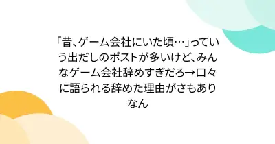 「昔、ゲーム会社にいた頃…」っていう出だしのポストが多いけど、みんなゲーム会社辞めすぎだろ→口々に語られる辞めた理由がさもありなん