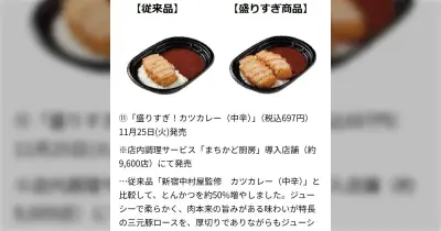 ローソンの「盛りすぎチャレンジ」のカツカレーがどう見てもとんかつが100%増えていておもろいがローソンは百分率ができないのか?
