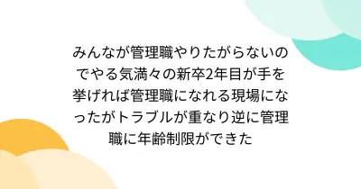 みんなが管理職やりたがらないのでやる気満々の新卒2年目が手を挙げれば管理職になれる現場になったがトラブルが重なり逆に管理職に年齢制限ができた
