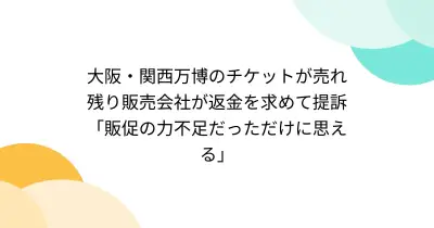 大阪・関西万博のチケットが売れ残り販売会社が返金を求めて提訴「販促の力不足だっただけに思える」