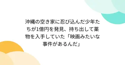 沖縄の空き家に忍び込んだ少年たちが1億円を発見、持ち出して薬物を入手していた「映画みたいな事件があるんだ」