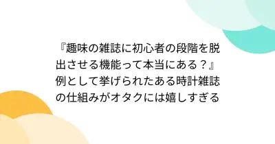 『趣味の雑誌に初心者の段階を脱出させる機能って本当にある?』例として挙げられたある時計雑誌の仕組みがオタクには嬉しすぎる