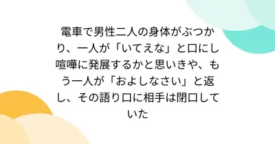 電車で男性二人の身体がぶつかり、一人が「いてえな」と口にし喧嘩に発展するかと思いきや、もう一人が「およしなさい」と返し、その語り口に相手は閉口していた