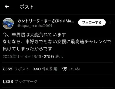 広末涼子さん、首都高バトル界隈を揺るがす