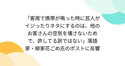 「客席で携帯が鳴った時に芸人がイジったりネタにするのは、他のお客さんの空気を壊さないためで、許してる訳ではない」落語家・柳家花ごめ氏のポストに反響
