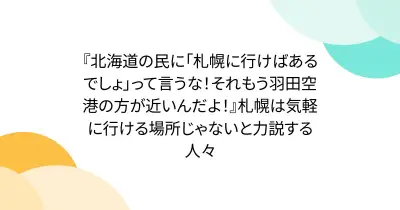 『北海道の民に「札幌に行けばあるでしょ」って言うな!それもう羽田空港の方が近いんだよ!』札幌は気軽に行ける場所じゃないと力説する人々