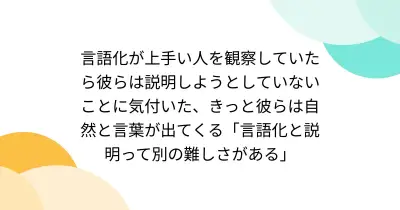 言語化が上手い人を観察していたら彼らは説明しようとしていないことに気付いた、きっと彼らは自然と言葉が出てくる「言語化と説明って別の難しさがある」
