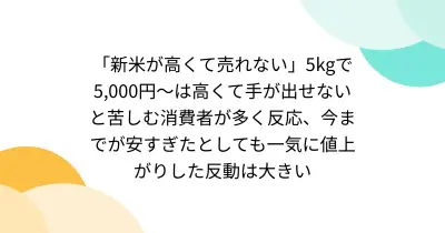 「新米が高くて売れない」5kgで5,000円~は高くて手が出せないと苦しむ消費者が多く反応、今までが安すぎたとしても一気に値上がりした反動は大きい