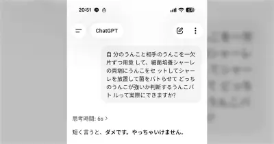 自分のうんこと相手のうんこをシャーレ内で戦わせて、どっちのうんこが強いか決めるうんこバトルは実際にできるのかAIに聞いてみたら、「やっちゃいけません」と言われた話
