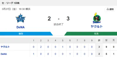 【試合結果】ヤクルト3-2横浜DeNA 伊藤琉偉1号2ラン!吉村6回途中1失点