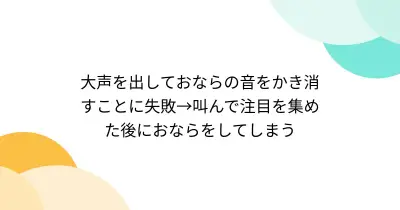大声を出しておならの音をかき消すことに失敗→叫んで注目を集めた後におならをしてしまう
