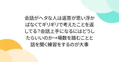 会話がヘタな人は返答が思い浮かばなくてギリギリで考えたことを返してる?会話上手になるにはどうしたらいいのか→場数を踏むことと話を聞く練習をするのが大事