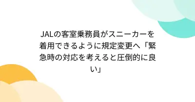 JALの客室乗務員がスニーカーを着用できるように規定変更へ「緊急時の対応を考えると圧倒的に良い」