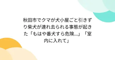 秋田市でクマが犬小屋ごと引きずり柴犬が連れ去られる事態が起きた「もはや番犬すら危険...」「室内に入れて」