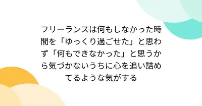 フリーランスは何もしなかった時間を「ゆっくり過ごせた」と思わず「何もできなかった」と思うから気づかないうちに心を追い詰めてるような気がする