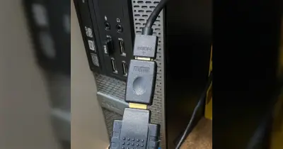 変換に変換を噛ませて数珠繋ぎにしたらすんごいケーブルが爆誕した、これでもちゃんと映ります「これだけやっても信号自体は変換されてない」
