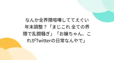 なんか全界隈喧嘩しててえぐい 年末調整?「まじこれ 全ての界隈で乱闘騒ぎ」「お嬢ちゃん、これがTwitterの日常なんやで」