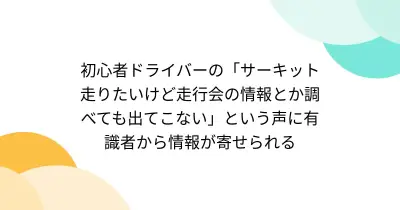 初心者ドライバーの「サーキット走りたいけど走行会の情報とか調べても出てこない」という声に有識者から情報が寄せられる