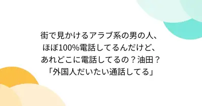街で見かけるアラブ系の男の人、ほぼ100%電話してるんだけど、あれどこに電話してるの?油田?「外国人だいたい通話してる」