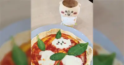 「フライパンでピザ作った」そのモッツァレラチーズがちいかわの姿をしていてめっちゃカワイイ