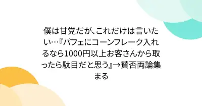 僕は甘党だが、これだけは言いたい…『パフェにコーンフレーク入れるなら1000円以上お客さんから取ったら駄目だと思う』→賛否両論集まる