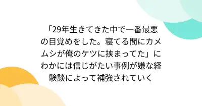 「29年生きてきた中で一番最悪の目覚めをした。寝てる間にカメムシが俺のケツに挟まってた」にわかには信じがたい事例が嫌な経験談によって補強されていく