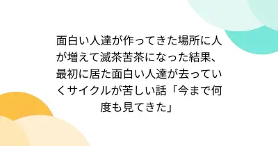 面白い人達が作ってきた場所に人が増えて滅茶苦茶になった結果、最初に居た面白い人達が去っていくサイクルが苦しい話「今まで何度も見てきた」